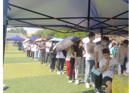 在核酸检测现场,如发现学生体温高于37.3℃,现场值班老师(辅导员)迅速吹哨让测温区内的全体学生停止前进,值班老师快速带领体温异常学生到校隔离室,学校校医立即对体温异常学生进行二次体温测试、询问健康状况,流程与场景一相同。