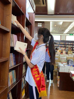 (图为刘柏辰同学在整理书籍)
