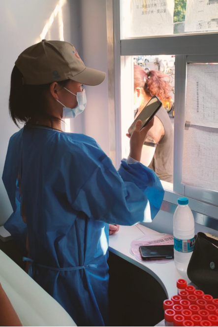 今年暑假,我们有幸参加了大学生返家乡社会实践活动,在本次活动中,我们的主要任务是配合医务人员进行核酸检测的辅助工作。我们负责给未扫二维码的小区居民扫描二维码,登记核酸检测所需的相关资料,同时引导检测结束的人员从相应的门离开检测点,合理安排排队人员的位置,确保人数平均,将出口与入口人流分开,保证核酸检测的有序快速进行。除此之外,我们还耐心回答大家提出的问题,帮助不会操作的老年人进行信息的填写。我们在志愿服务过程中不仅提升了自己与人交往的能力,还在帮助别人的过程中收获了快乐。