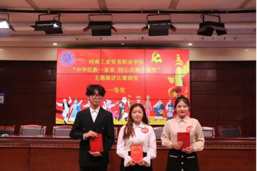 为深入学习习近平总书记关于加强和改进民族工作的重要思想,贯彻落实中央、省委民族工作会议精神,根据《中共河南省委教育工委办公室、河南省教育厅办公室关于举办河南省高校大学生“中华民族一家亲 同心共筑中国梦”主题演讲比赛的通知》,10月13日下午,河南工业贸易职业学院“中华民族一家亲 同心共筑中国梦”主题演讲比赛在龙湖校区3101报告厅举办。