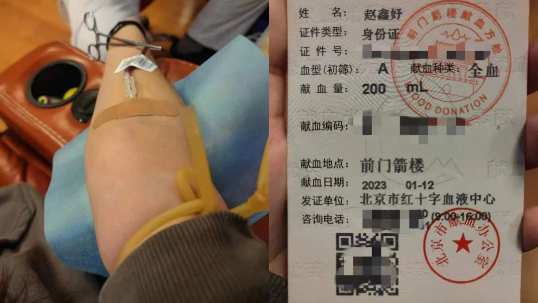 22商英102班的赵鑫妤同学假期随父母在北京过年,当她从学院的倡议书中得知全国很多地方血库告急,很多病人不能得到及时医治时,她就在网上查询北京市可以义务献血的地点,她不顾寒冷的天气和自己刚刚恢复的身体,坐车去血站献血。她在给老师的微信留言中写道:我知道这个冬天全国人民都过的很不容易,我在北京也看到很多生病的人,尤其是老人,反复发烧咳嗽很不容易好。我年轻力壮,如果能为他们做点什么,我是非常乐意的,希望大家都赶快好起来,可以过个好年。