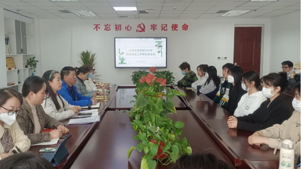 为深入学习贯彻习近平新时代中国特色社会主义思想和党的二十大精神,落实教育部、河南省教育厅关于2023年高校毕业生就业工作要求,确保毕业生更高质量更充分就业,3月27日下午,应用外语学院在图书馆A9006召开了2023年创业就业工作师生座谈会,院长范勇慧、党总支书记李松奇、副书记田莉莉、副院长张喆、顾佳、毕业生辅导员以及我院25位学生代表参加了本次会议。