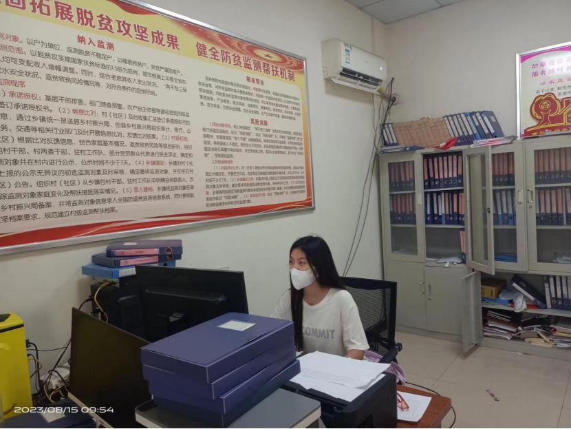 22应英101班的王柯瑶同学在假期期间参加了家乡西平县重渠乡王湾村村委的志愿服务活动。她的工作是在村委做志愿者,工作内容是帮助村干部整理资料,制作居民信息表格,接待来访群众等。王珂瑶同学表示能利用自己所学知识为家乡的基层工作出一份力感到非常荣幸,通过本次实践活动,自己积累了宝贵的经验和信心,也更加坚信只要志存高远,脚踏实地,就能在实现中国梦的伟大实践中书写人生华章。