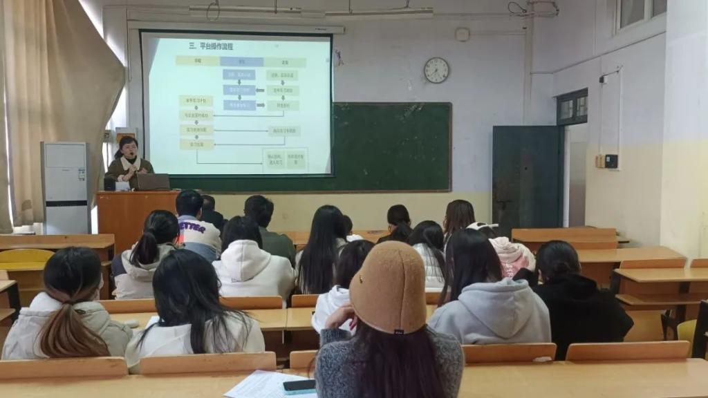 随后,顾佳宣读了2022级3+2学生实习方案,对实习总体安排和注意事项做了详细讲解,包括实习时间、实习指导老师、实习前需要填写的资料、实习的成果要求以及实习期的管理,并对实习管理平台学生端的具体操作流程进行了介绍。她鼓励同学们要调整心态,统筹规划,合理安排时间。