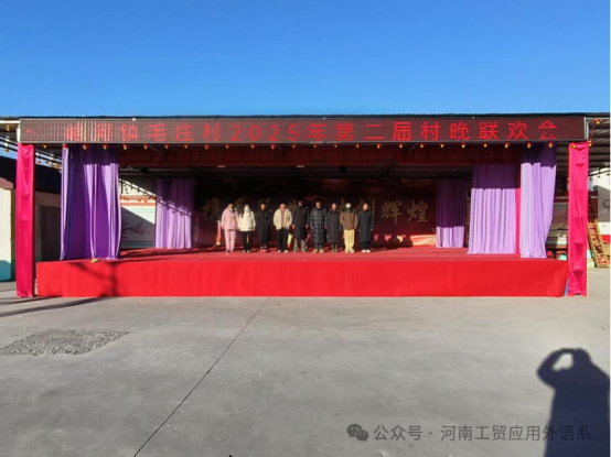 24商英104班的周冰怡同学在新乡市辉县市峪河镇毛庄村村委会进行社会实践,她积极参与家乡文化宣传活动 ,与其他大学生志愿者一起参与当地的春晚节目筹备工作,从舞台布置到节目安排周冰怡同学都全程参与,能把喜闻乐见的节目在春节期间带给家乡的父老乡亲,周冰怡同学感到非常骄傲和自豪。