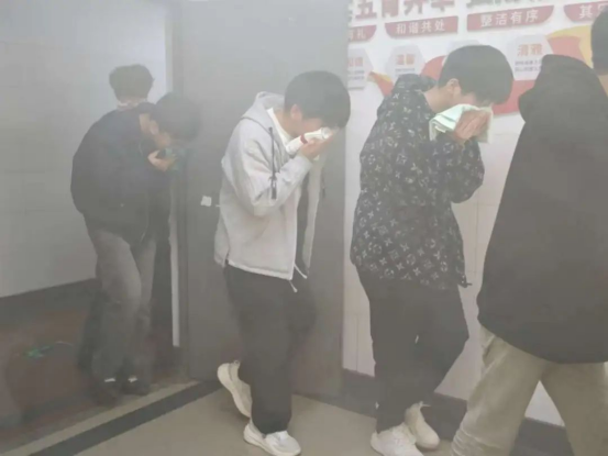 随后,警报声突然响起,标志着消防演练正式开始。在老师的组织下,各班级学生迅速行动,按照预定的疏散路线,弯腰低姿态,快速而有序地撤离到安全区域。整个疏散过程紧张而有序,仅用了短短几分钟,全体成员便完成了撤离。