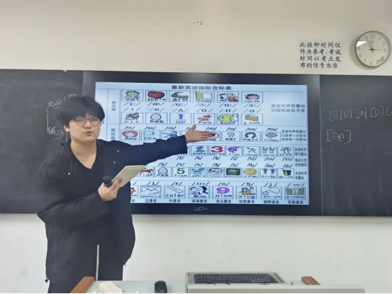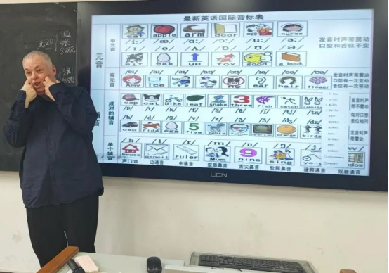 为了让同学们更好地掌握音标发音,活动特别邀请了外教 Michael 参与。Michael 带领同学们朗读练习音标例词,在他的耐心指导下,同学们的发音更加标准、地道。