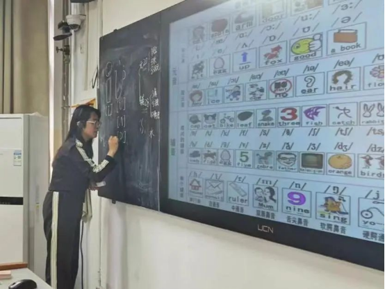 在讲解过程中,主持人分享了自己的学习经历,坦言曾经对音标也是一知半解,后来通过网络学习,发现了一种将元音和辅音通过漫画和故事串联起来的高效学习方法。为了让同学们更好地理解,她现场以粉笔手绘的形式,详细演示了音标的写法和发音,这种新颖的教学方式让同学们耳目一新,大家纷纷一边认真聆听,一边动手书写,现场学习氛围十分热烈。