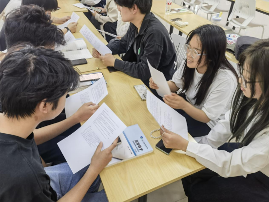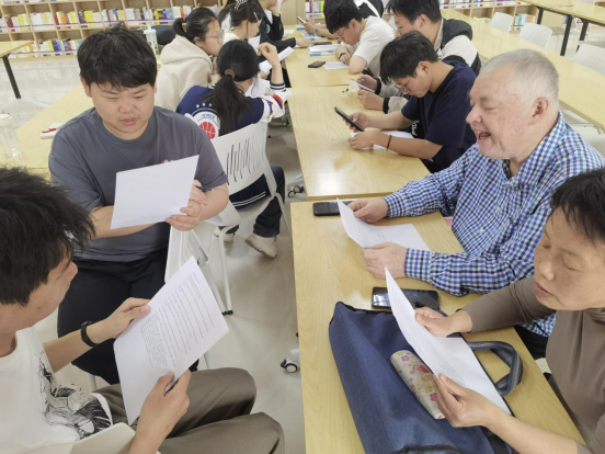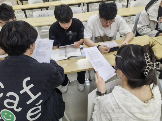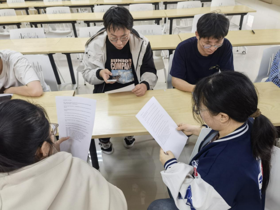 为了让大家更深入地感受清明节文化,主持人提前精心设计了清明节主题的读者剧场剧本。同学们迅速分组,在现场展开紧张而有序的练习。大家互相帮助,齐心协力扫除生词障碍,认真分配角色,一句一句地揣摩语气、练习朗读。
