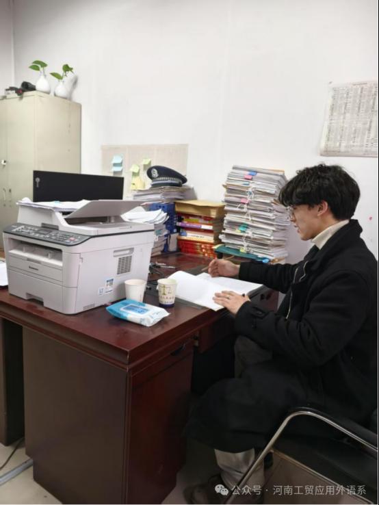 24商英103班的李捷同学在驻马店平舆县人民法院进行社会实践,他的主要工作是整理案件卷宗,归档文件,帮助法官准备庭审材料等。在实践过程中,通过参与文书整理、庭审旁听、归档文件等工作,他提高了自己的法律意识,增强了文书写作和沟通技巧。他表示通过这次“返家乡”社会实践活动,深刻认识到理论与实践相结合的重要性,也希望以后可以了解更多的法律知识,为维护社会公平正义、保障人民合法权益贡献自己的力量。