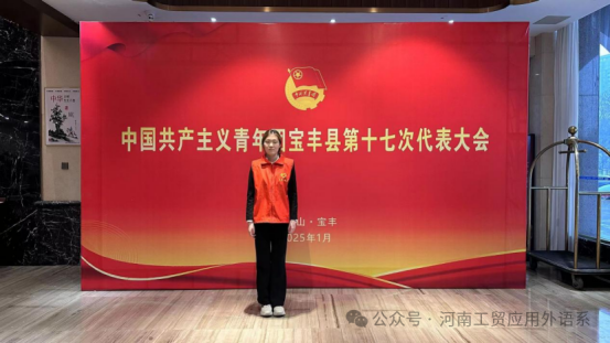23商英102班的王義涵同学在共青团宝丰县第十七次代表大会中担任志愿者。在代表大会进行前期,志愿者们通过问卷调查、座谈会等形式,收集到了大量关于青年团员在学习、工作、生活等方面的需求和意见。在大会举办当天,王義涵同学负责参会人员的签到、资料发放、会场引导,以及拍摄会议照片和视频等工作。通过参与实践工作,王義涵同学提升了组织协调、沟通表达和团队合作能力,增强了责任感和执行力。她表示,参加这次志愿服务活动非常有意义,如此近距离接触团组织的运作,深入了解共青团的工作内容和精神,极大地提升了自己的政治素养和社会责任感。