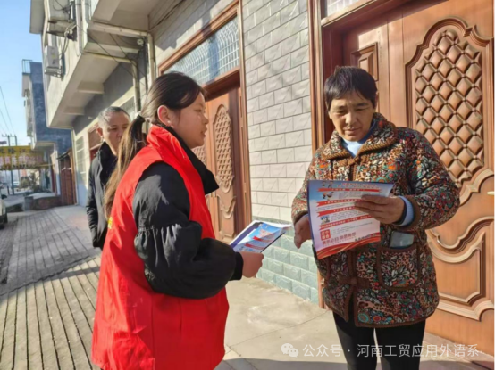 24应英103班的王莹莹同学在南阳市桐柏县固县镇人民政府参加社会实践,她从事的主要实践内容是进行防诈宣传,她和其他志愿者一起走街串巷,向街坊邻居们发放宣传材料,讲解了电信网络诈骗的特点、诈骗手段等,并就如何有效地防范典型网络诈骗,提高自身警惕性等方面进行了详细讲解,帮助广大群众提升反电信网络诈骗意识。王莹莹同学表示:如今诈骗无孔不入,提高全民反诈意识,迫在眉睫。我们作为新时代的大学生更应保持警惕,平时擦亮眼睛,营造良好风气,引导全社会关注关爱接触网络较少的老人和涉世未深的年轻人,共同协力铲除犯罪土壤!