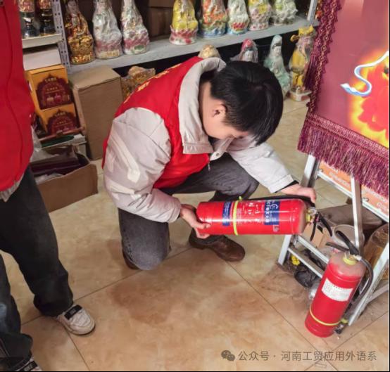 24商英101班王鹏宇同学在开封市通许县爱民社区参加社会实践,他的主要工作内容是对社区消防安全进行排查和进行消防知识的宣传活动。志愿者们前往超市和商户等人员密集场所开展消防隐患排查工作。他们认真检查消防设施是否完好有效,疏散通道是否畅通无阻。一旦发现问题,便及时与场所负责人沟通,提出切实可行的解决意见,共同助力商家筑牢消防安全防线。他们还深入社区,开展消防安全知识宣传活动。他们用通俗易懂的语言,向居民们讲解火灾预防、初期扑救以及逃生自救等关键知识,帮助居民提升消防安全意识与应急能力。