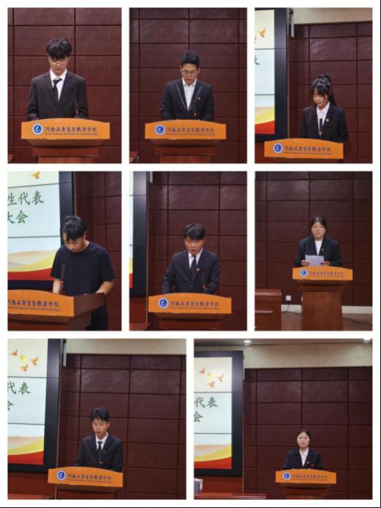 本次学代会在庄严的国歌声中拉开序幕。接着由23级学生会主席团成员简佳浩和王思宇分别作述职报告,全面总结了过去一年在组织建设、校园活动、志愿服务等方面取得的优异成绩,并号召全体同学为学院高水平发展贡献青春智慧,绽放青春光彩。