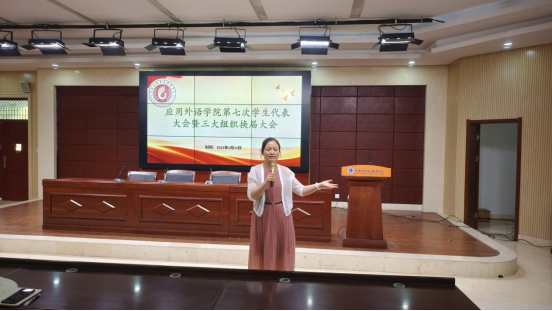 为全面贯彻落实党的二十大及二十届三中全会精神,引领广大学生在“四高四争先”中挺膺担当,扎实推进学院各项事业稳步发展,应用外语学院于5月12日中午在3101教室召开第七次学生代表大会并同时完成学院三大组织机构换届。学院党总支副书记赵伟生、团总支书记张艳华、辅导员王玲、曾媛及全体学生代表齐聚一堂,共谋发展新篇章。会议由24应英102班王文灿同学主持。