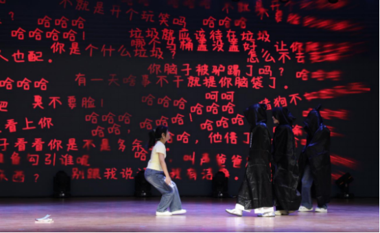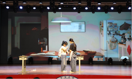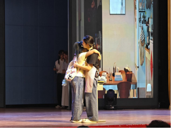 比赛现场,我院演员们以极具穿透力的表演,将角色从封闭自我到突破心防的心理变化表现得淋漓尽致。王玲老师与学生演员对手戏默契,其温柔姿态、关切眼神与学生肢体呼应,让“破茧”情感张力层层递进,引得观众屏息共鸣,掌声浪潮般迭起。