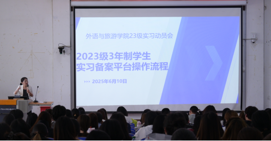 此次实习动员大会的召开,充分彰显了外语与旅游学院对实习工作的高度重视,为2023级学生顺利开启实习征程指明了方向。下一步,学院将持续加强与实习企业的沟通协作,强化实习过程指导与安全管理,确保实习工作规范、有序、高效开展。相信在学院的精心组织与全体师生的共同努力下,2023级学生将以饱满的热情、严谨的态度投入实习,在实践中淬炼本领、增长才干,为未来职业发展奠定坚实基础,为国家与社会的发展献出青春力量。