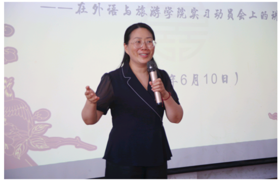 为切实推进实习工作有序开展、增强学生实践认知与职业素养并明确实习规范要求,2025年6月10日,外语与旅游学院在龙湖校区阶梯教室召开2023级学生实习动员大会。党总支书记王秀华、外语与旅游学院院长焦艳娜、公共英语教研室主任郜珂、团总支书记张艳华、部分教师代表及2023级全体学生出席本次会议。