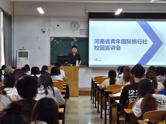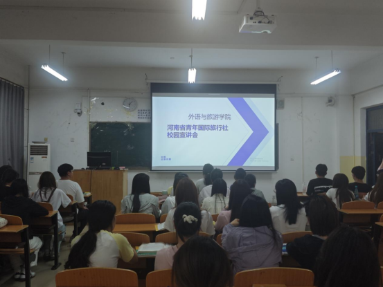 为助力外语与旅游学院学子拓展就业视野、精准对接行业需求,6 月 11 日周三下午 5:40,外语与旅游学院“2025 年企业宣讲系列活动”第二场在3号楼3303教室顺利开展。本次宣讲会特邀河南省青年国际旅行社,为同学们带来了一场聚焦旅游行业前沿资讯与多元岗位机遇的精彩分享,现场气氛热烈。