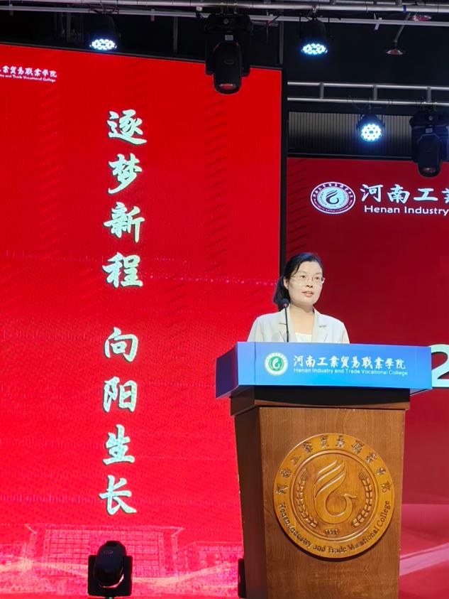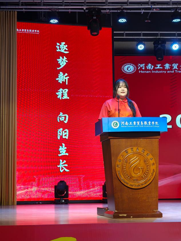 新生代表2025级商英101班刘雨彤代表全体新生表达了对大学生活的期待与决心:“站在大学这个新起点,我们既满怀对未来的憧憬,也深知肩负的责任。我们将秉承‘厚德强能、明理笃行’的校训,脚踏实地学好专业知识,积极主动参与实践锻炼,在课堂中求知,在社团中成长,在社会实践中历练。”