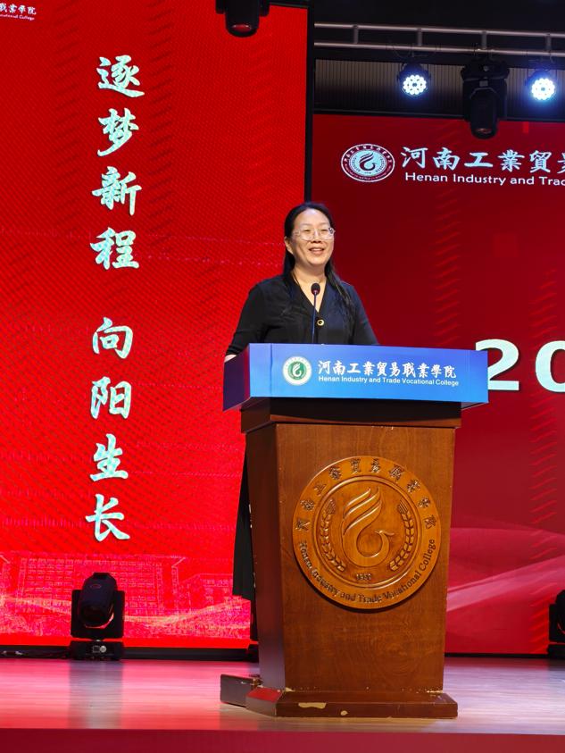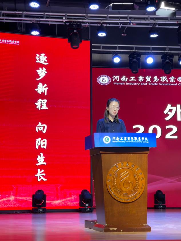 院长焦艳娜以“新生”身份亲切开场,分享了庞众望等优秀学子的励志故事,鼓励同学们“不管拿到什么牌,都要努力打好”。她强调,外语与旅游相关领域前景广阔,鼓励同学们坚定专业选择、脚踏实地、勇于追梦。