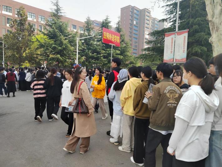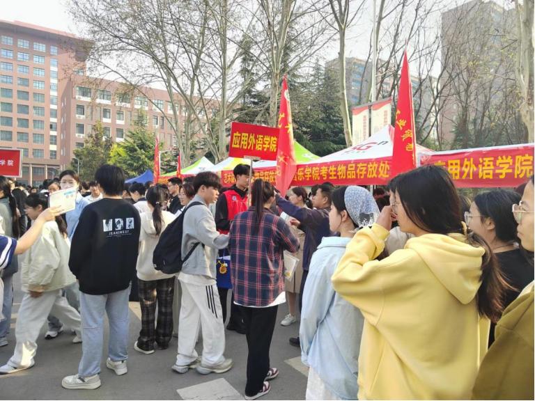 为确保2024届毕业生专升本考试平稳有序进行,4月1日早上7点30分,应用外语学院院长范勇慧、党总支副书记赵伟生、副院长张喆、团总支书记张艳华以及毕业班辅导员王玲来到考场外,为考生加油打气,护送我院考生有序进入考场。