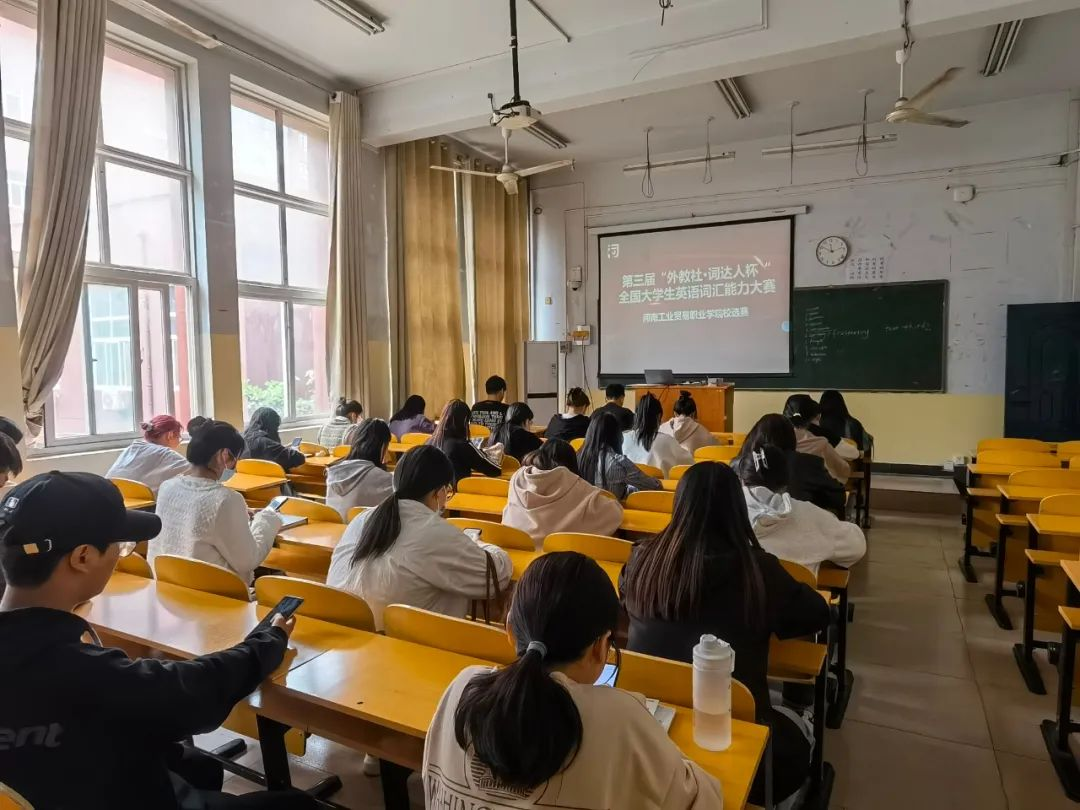 为推动大学生深入学习习近平新时代中国特色社会主义思想,贯彻落实党的二十大精神,弘扬中华优秀传统文化,并通过推动英语词汇学习和测试手段的创新,从而提高英语智慧化教学水平,提升学生的英语应用能力,应用外语学院于2023年4月16日16:00-17:00成功举办第三届全国大学生英语词汇能力大赛—河南工业贸易职业学院选拔赛。此次比赛在优胜校区和龙湖校区同时举行,面向全校学生,共计800多名同学报名参赛。