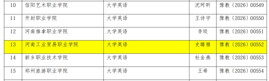 近日,河南省教育厅办公室发布了《关于公布2025年河南省高等职业教育课堂教学创新大赛获奖名单的通知》(教办职成〔2026〕19号),我院教师史璐雅荣获公共基础课程组二等奖。
