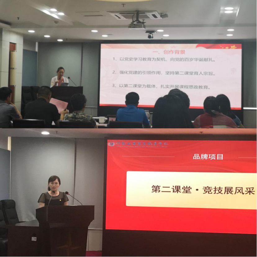 7月14日下午,河南省粮食和物资储备局在局机关第五会议室举办了“党建创新引领业务创优”案例展评活动。我院顾佳、张艳华两位老师经过充分的研讨和准备,积极参与到评选活动中,最终张艳华老师凭借作品《红船精神引航向,第二课堂谱新篇》获得二等奖,顾佳老师凭借作品《党建促教改,竞技展风采》获得优秀奖。