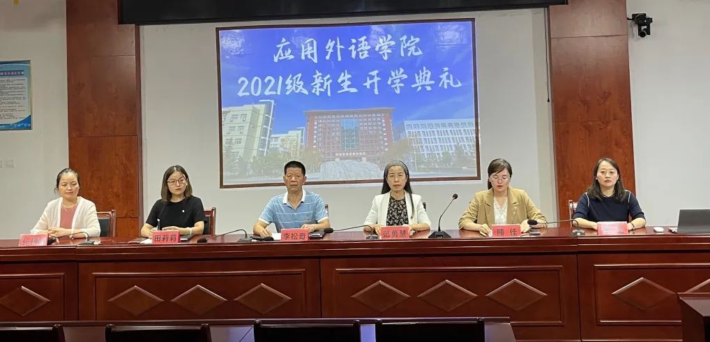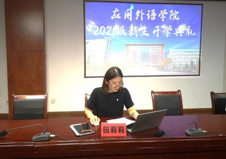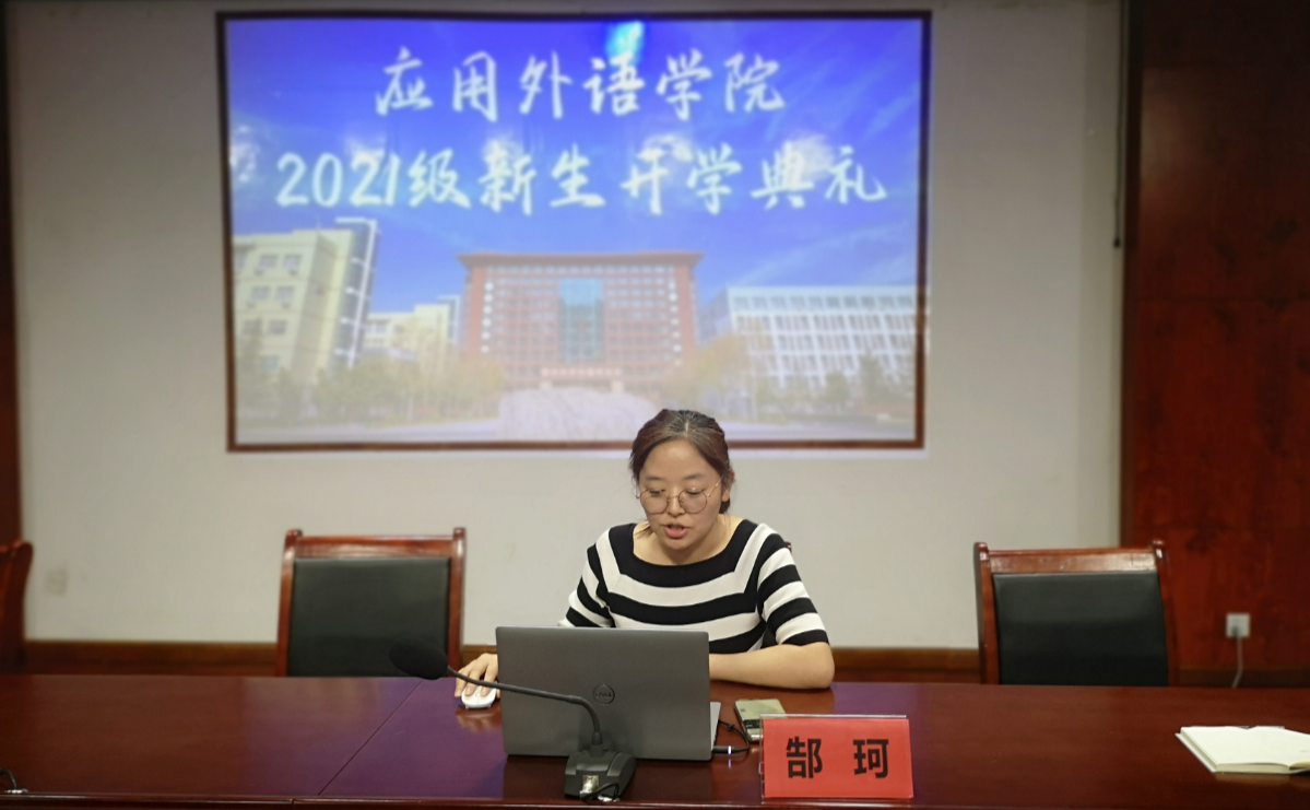 碧水清溪映长空,清秋玉露又金风。9月7日下午14点,应用外语学院在龙湖校区行政楼一楼招聘会议室隆重举办21级新生线上开学典礼,全院师生共聚云端,热烈欢迎新同学的到来。应用外语学院院长范勇慧,党总支书记李松奇,副院长张喆、顾佳,党总支副书记田莉莉、团总支书记张艳华、教研室主任张昕、郜珂以及新生辅导员现场出席会议。顾佳主持会议。