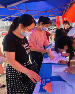 2020年7月2日专升本学生按照要求佩戴口罩、扫描二维码填报个人信息、检测体温、一切要求达标后进入校园。辅导员王玲、陈丹蕾收取学生的健康承诺书、信息登记表、为学生发放防疫包及相关手册,确保每位学生身体健康后带领学生入住宿舍区域。