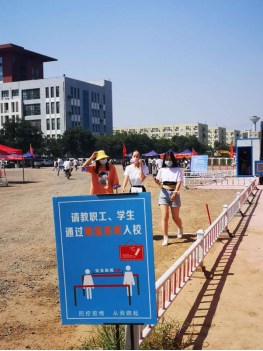 8月29日返校当日,我系2019级学生佩戴口罩依次排队进入消毒防疫通道,学生经过行李消毒,扫描二维码填报个人信息,测温等流程,体温正常方可进入校园。