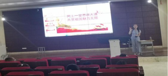 为深入贯彻习近平新时代中国特色社会主义思想和党的十九大精神以及十九届二中、三中、四中全会精神,贯彻落实习近平总书记在学校思想政治理论课教师座谈会上的重要讲话精神,积极响应我院思政建设的要求,2020年9月14日,应用外语系主任范勇慧为我院19动漫102班、19应英101班、19商英101班、18酒店102班学生做了题为《同上一堂思政大课,共赏祖国魅力无限》的专题讲座,讲座内容丰富、富有感染力,学生们认真聆听,取得了非常好的效果。