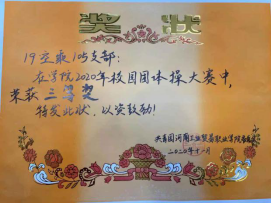 为增强学生体质,增进学生健康,同时也为了丰富学院闭环管理期间的校园文化生活,校团委于2020年11月24日下午在南校区体育馆举行了校园团体操比赛。校团委书记张现振,学生工作处处长刘晓霞,工商管理学院院长杜泽云,应用外语学院党总支书记李松奇及各学院学管负责人出席本次校园团体操比赛。全校共有16支队伍参赛,经过激烈角逐,我院20级商英101支部与19级空乘105支部两支队伍荣获佳绩。
