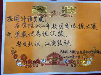 “台上十分钟,台下十年功”,我院学生秉承拼搏奋斗的精神,在课余时间勤奋苦练,最终在赛场上风采洋溢,取得优异成绩。应用外语学院20级商英101支部荣获2020校园团体操大赛一等奖;19空乘105支部荣获2020校园团体操大赛三等奖,应用外语学院荣获最佳组织奖。