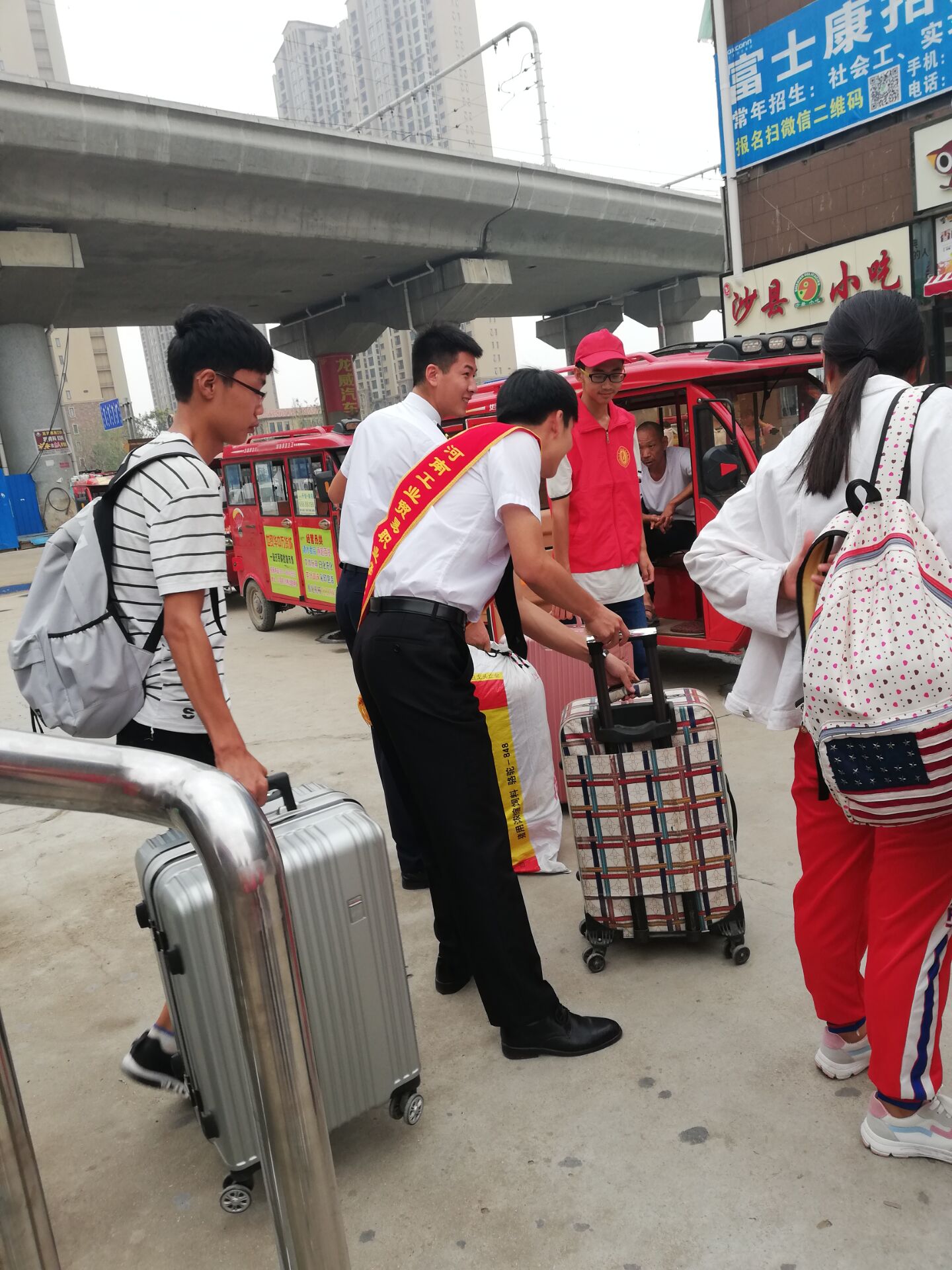 9月15日上午9时,外语系志愿者们准时到达地铁站,经过地铁工作人员对指引动作、口令以及可能遇到的情况和解决措施等的简短培训后,志愿者们立马投入到帮助新生和家长以及其他乘客顺利进出闸机、指引出站方向和学校位置,帮助新生和家长搬运大件物品等工作中。