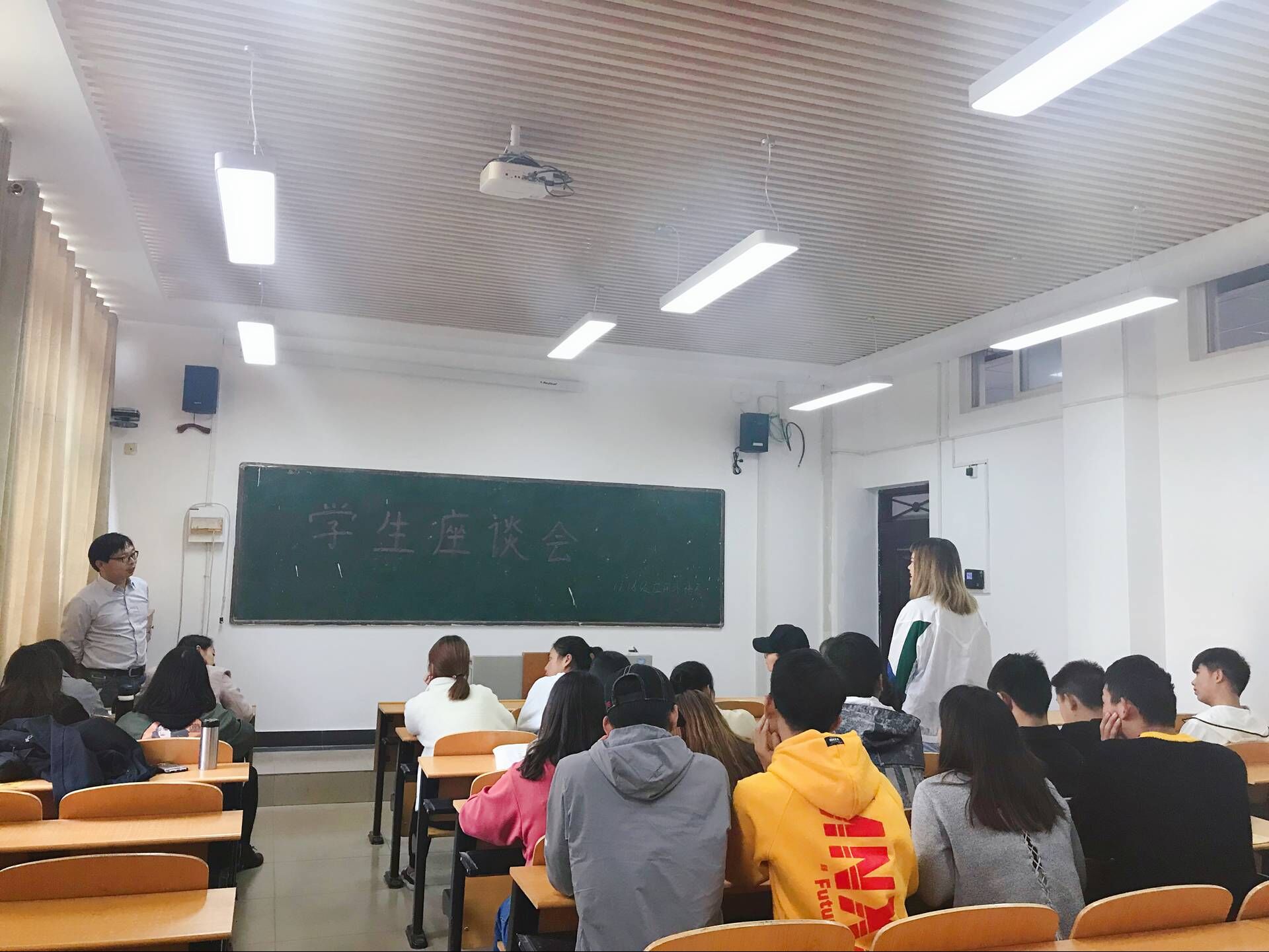 此次座谈会由赵现标老师主持,各班学生代表就本班同学对学校各项设施及对各科授课老师提出了真挚的建议。在此次会议中,学生代表反映了学校部分教育设施和宿舍条件不够完善和图书馆的开放时间较短等问题。对于学生代表所说的各项问题,参会的老师们也对相关问题进行了详细的解答,对于同学们提出各项意见和建议,老师们也一一记录了下来并将及时向学院相关部门反映。