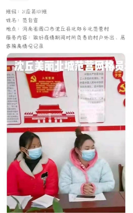 他们秉承着“奉献、友爱、互助、进步”的志愿精神,在疫情防控中当先锋、做表率,用坚定、顽强的实际行动谱写了青春奋斗的故事,用无私、坚韧的青春力量谱写了当代青年的责任与担当,展现了我院青年大学生的青春风采。