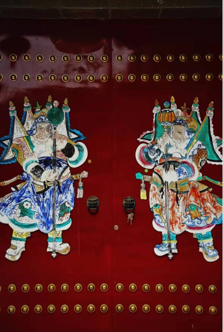 l 人们在门上贴门神,来祈求幸福、长寿、健康与和平。两扇门上的门神被认为能够驱赶恶灵。