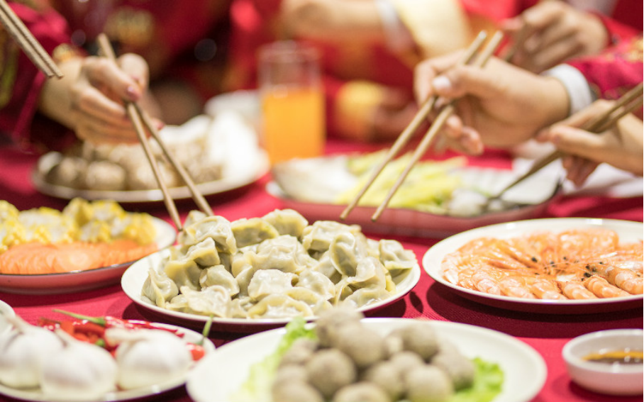 l 春节是一个合家团圆的日子,在除夕夜,全家都合家团圆一起共享除夕大餐。这顿饭通常是全家总动员,每个人都要参与,也通常是一年之中最丰盛美味的一餐。在年夜饭中,有一些美好象征意义的美食是必备的。比如在北方,年夜饭上的传统菜肴是饺子。饺子的形状很像古代中国的元宝,象征着财富。
