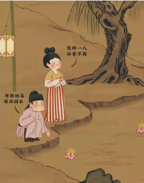 The Lantern Festival is also a romantic holiday. In feudal society, young girls were not allowed to go out freely. But on the night of the Lantern Festival, they were allowed to view the lantern lights in groups. Sometimes couples would go on dates strolling down the streets lit with lantern lights. Another activity, guessing the answers to lantern riddles, gives young people a chance to interact with each other and know more about each other. For thousands of years, there have been numerous love stories originating during the Lantern Festival.