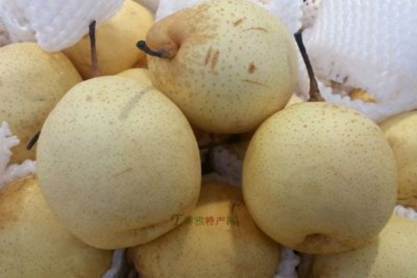 近年来,宁陵县石桥镇围绕建设“中国优质酥梨之乡”的战略目标,石桥镇酥梨面积由原来的2.3万亩发展到现在的4.2万亩,成为河南省最大的酥梨集产区。酥梨以其表面光洁,个大丰满,多汁酥脆,营养丰富和无公害等几大特点,深受国内外消费者的喜爱。果实近圆柱形,顶部平截稍宽,平均单果重250克,大者可达1000克以上;果皮绿黄色,贮后黄色;果点小而密;梗洼浅狭,中广有条锈式片锈;萼片多脱落;果心小;果肉白色,中粗,酥脆,汁多,味浓甜。
