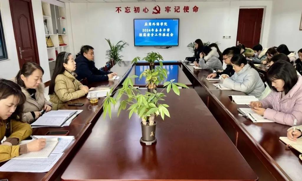 为深入贯彻落实习近平总书记关于安全生产重要论述和重要指示批示精神,切实增强全体教师的安全意识,保证师生生命财产安全,维护学校安全稳定,2024年3月5日下午,应用外语学院于图书馆A9006会议室召开2024年春季开学校园安全工作推进会。会议由党总支副书记赵伟生主持,全体教职工参会。