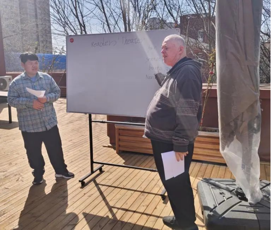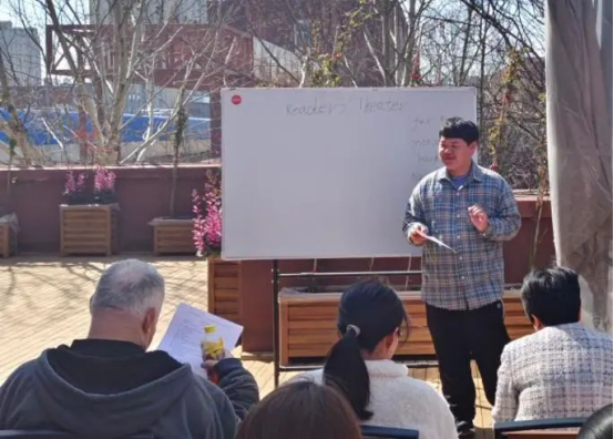 活动伊始,主持人向大家介绍了读者剧场(Reader’s Theater)的概念。他解释道,读者剧场是一种通过朗读剧本进行的表演形式,强调语音表达和情感传递,而不需要复杂的道具和舞台布置。这种形式不仅能够提升参与者的英语朗读能力,还能增强团队合作和表现力。