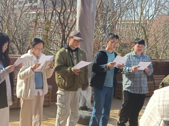 为丰富校园文化生活,提升学生的英语口语表达能力和团队合作精神,应用外语学院英语协会于本周二下午在办公楼三楼露台涵真苑举办了主题为“读者剧场初体验”的活动。本次活动由24应英101班的付翊嘉同学主持,该同学是英语协会各项活动的积极参与者,为本次活动的顺利开展做了大量前期准备工作。