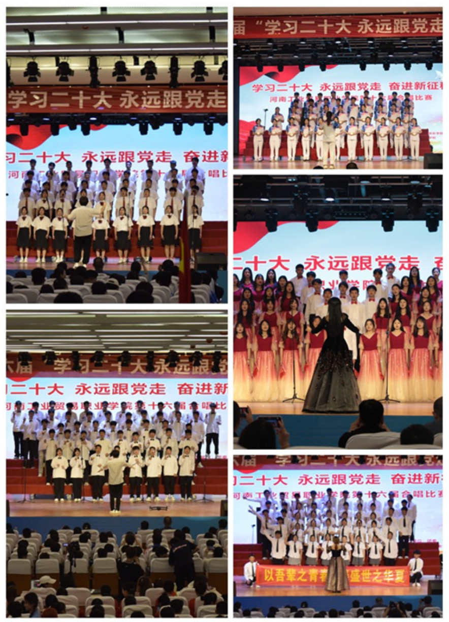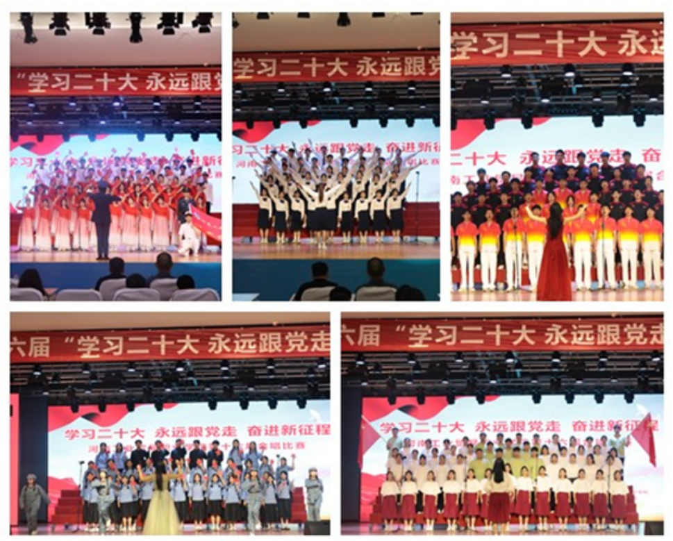 为深入落实习近平总书记关于青年工作的重要思想,聚焦抓好党的事业后继有人这个根本大计,在青少年中广泛宣传党的二十大精神,5月16日13时,由校团委和音乐学院主办,其他各学院承办的第十六届 “学习二十大 永远跟党走 奋进新征程”合唱比赛总决赛在龙湖校区报告厅成功举办。校团委及各学院领导、师生一千余人欢聚一堂。音乐学院的专业教师团队担任了本次比赛的评委,并负责赛前艺术指导工作。本次比赛也是我校“学习习近平新时代中国特色社会主义思想”主题教育活动之一。