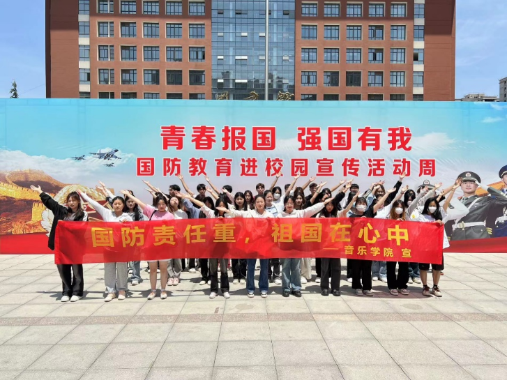 胸怀鸿鹄志,心系家国情。为贯彻落实习近平总书记关于加强全民国防教育的重要指示精神,进一步弘扬爱国主义精神,普及国防教育,增强学生国防观念,音乐学院于5月21日-22日在红旗广场开展以“国防责任重,祖国在心中”为主题的国防教育宣传活动。