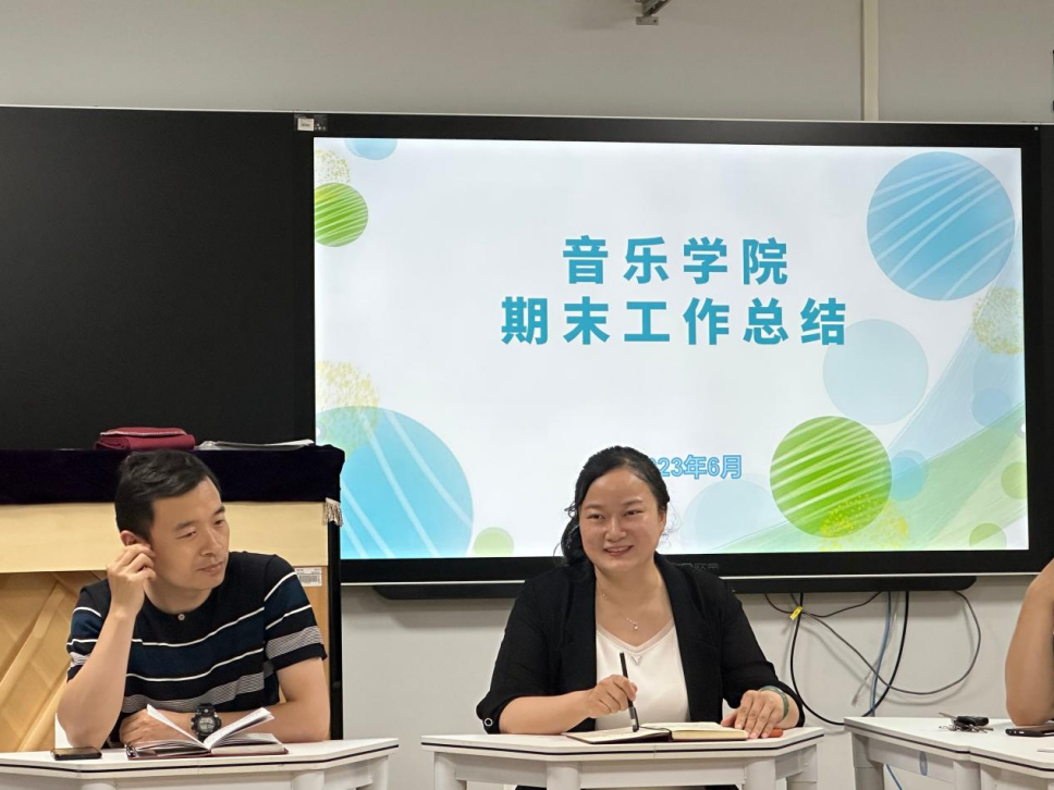 为回顾本学期教育教学工作,总结经验,进一步提高教育教学质量,推动学院人才培育工作的长足发展,6月26日,音乐学院2022-2023学年第二学期期末工作总结会议在音乐学院实训中心召开。会议由音乐学院副书记胡俊立主持,副院长李晖及全体教师参会。