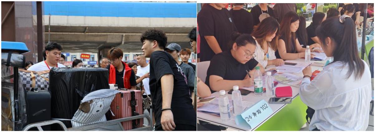 秋风送爽,丹桂飘香,在这个充满希望与活力的季节里,河南工业贸易职业学院音乐学院迎来了2024级新生入学这一盛大时刻。9月9日,校园里彩旗飘扬,横幅高挂,处处洋溢着热烈而温馨的氛围,我院师生以饱满的热情和诚挚的笑容,共同迎接来自五湖四海的莘莘学子,开启他们人生的新篇章。精心筹备,只为最美的初见清晨,随着第一缕阳光洒落校园,迎新工作也全面展开。校门口,迎新工作人员和志愿者们早已就位,志愿者们身着统一的服装,手持引导牌,耐心细致地为每一位新生及家长提供咨询服务、路线指引、行李搬运等贴心服务。一张张热情洋溢的笑脸,一句句温暖人心的话语,让初入校园的学子们感受到了家一般的温暖。