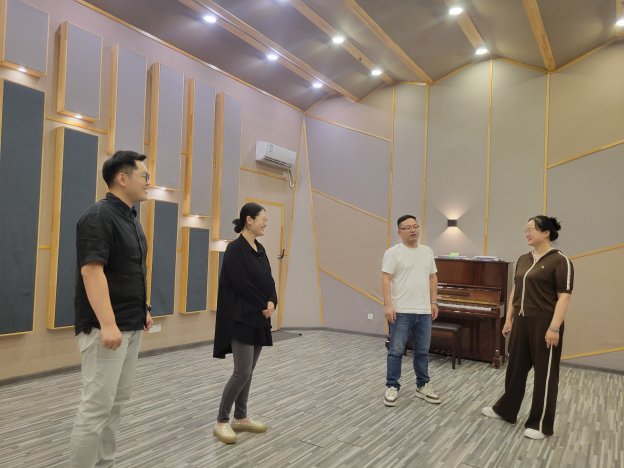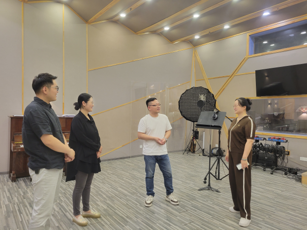 在雪竹文化负责人朱经理的陪同下,学院团队参观了专业录音棚及音乐制作中心。企业技术人员现场演示了录音、混音等核心工作流程,并介绍了当前音乐制作行业的技术趋势与市场需求。李晖院长表示,实地走访让学院更直观地了解到行业对人才技能的具体要求,为优化人才培养方案提供了重要参考。
